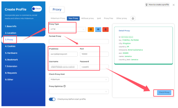 Step 4: Bind B2Proxy Residential Proxy in Hidemium
