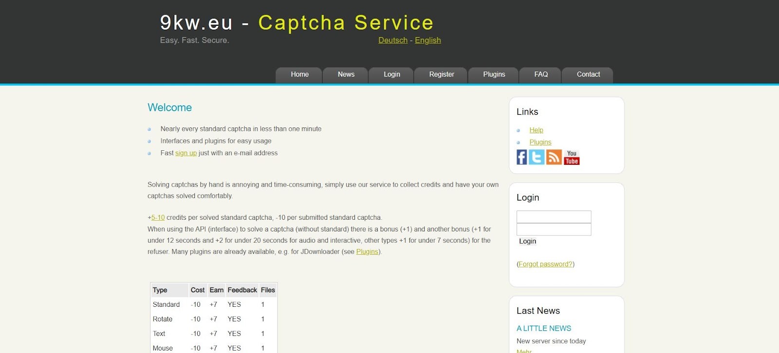 - Интеграция и инструменты: Имеется API для интеграции, а также плагины для популярных программ (JDownloader, OCR4all и др.). Доступно десктоп-приложение 9kw Client, которое может отслеживать буфер обмена или браузер и автоматически отправлять капчи на решение. Расширений для браузеров нет. Интерфейс сайта старомодный и аскетичный, но функциональный: есть статистика, форум сообщества, настройки приоритета задач и т.п.